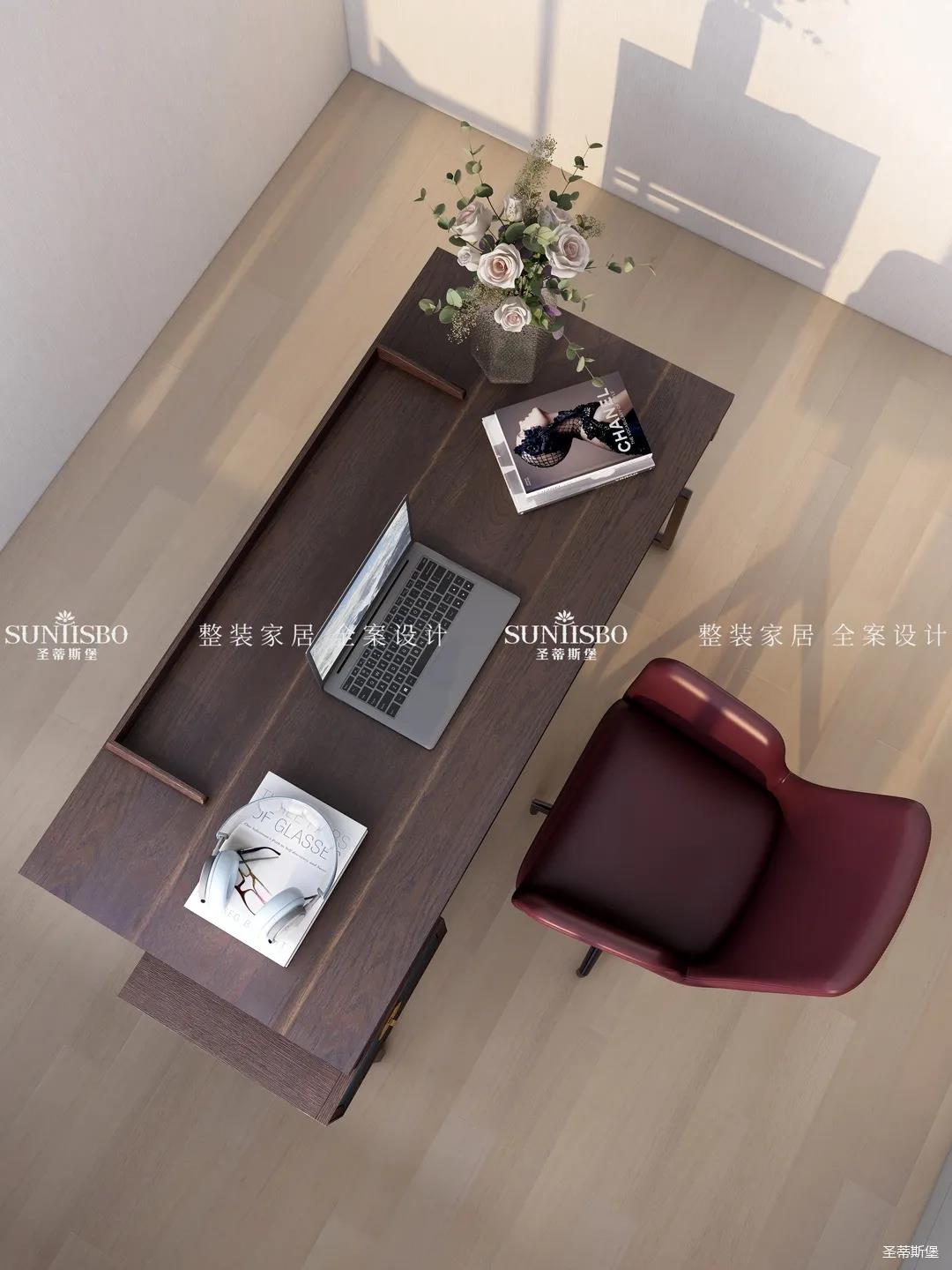 阳光透过窗户悄然进入,光影浮动间,实木书桌给书房腾出了一个安静惬意的阅读空间,偶尔放下书本,径直探向窗外,慢享阳光里慵懒的味道。